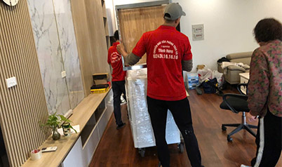 Tiến hành tháo dỡ đồ đạc đã thống nhất trước đó và bọc lót cẩn thận. Nhân sự tiến hành bốc xếp gọn gàng lên xe tải di chuyển đến nhà mới.